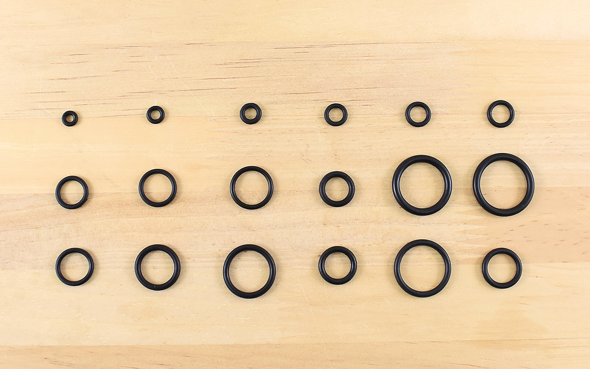 自宅のシャワーの接続部分から水漏れがあり、分解してみると使用されていたOリングの劣化が水漏れの原因でした。困ったのが新しいものに交換しようにも使用されていたOリングがどのサイズか分からないこと…。そのため今回は18種類のOリングがセットになった「Oリングセット Φ3-20mm」(1529円/税込)を購入することにしました。