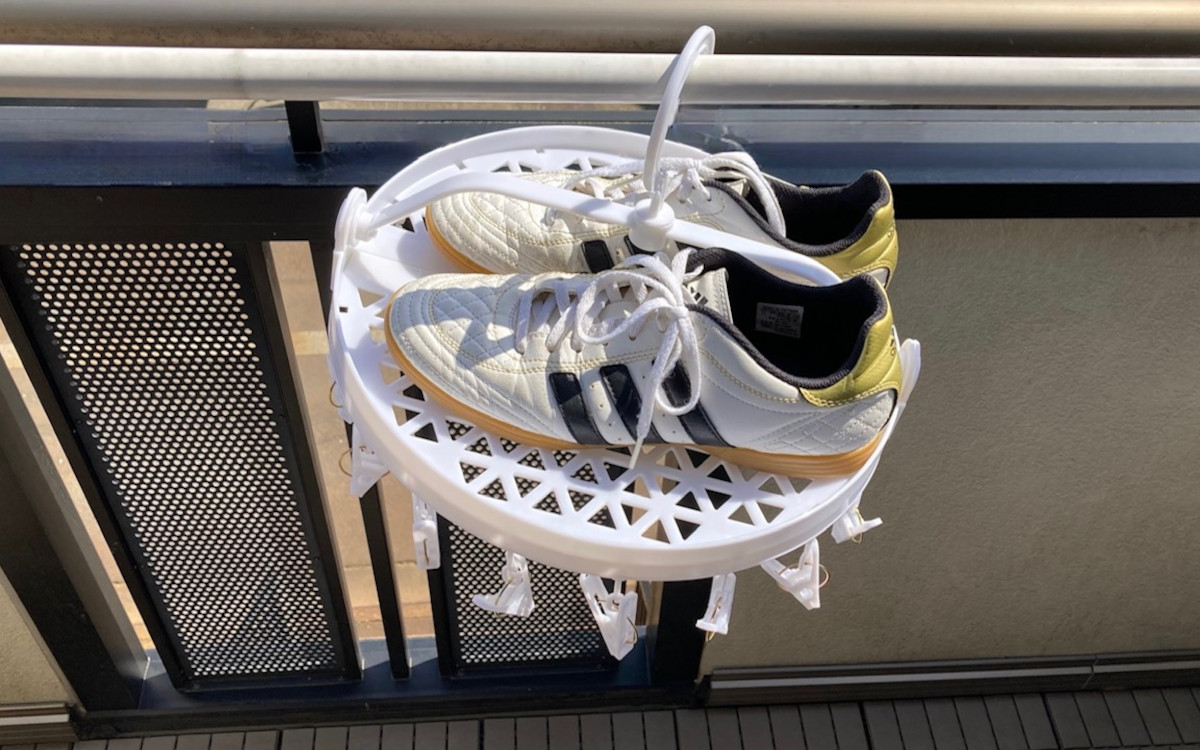 生活雑貨や文具、おしゃれなインテリアアイテムがほぼ100円というお値打ち価格で購入できるダイソー。今回ご紹介するのは、「シューズが干せるピンチ付ハンガー(16ピンチ)」という画期的な商品です。