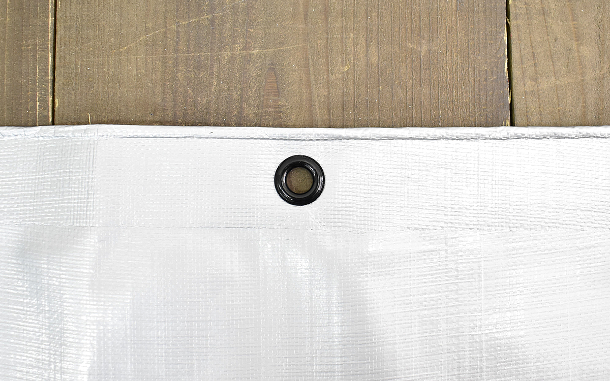 シートの素材は樹脂でできているので、約60℃を超える環境や高温物との接触で溶解・変形の危険性があるので要注意。ポリカーボネート製のハトメも樹脂ですので、分別することなく廃棄できるという利点もあります。