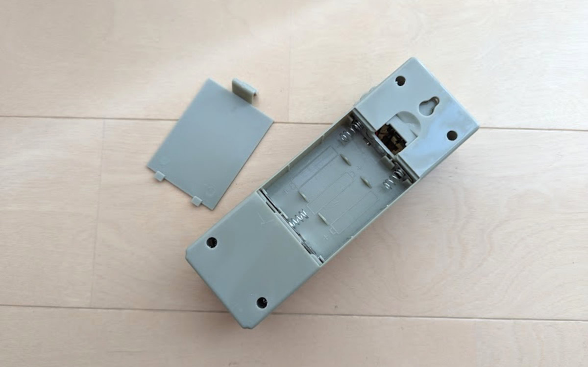 裏面に電池を入れる部分があり、単3乾電池を3本使用します。購入時はついていないので、用意するのをお忘れなく。