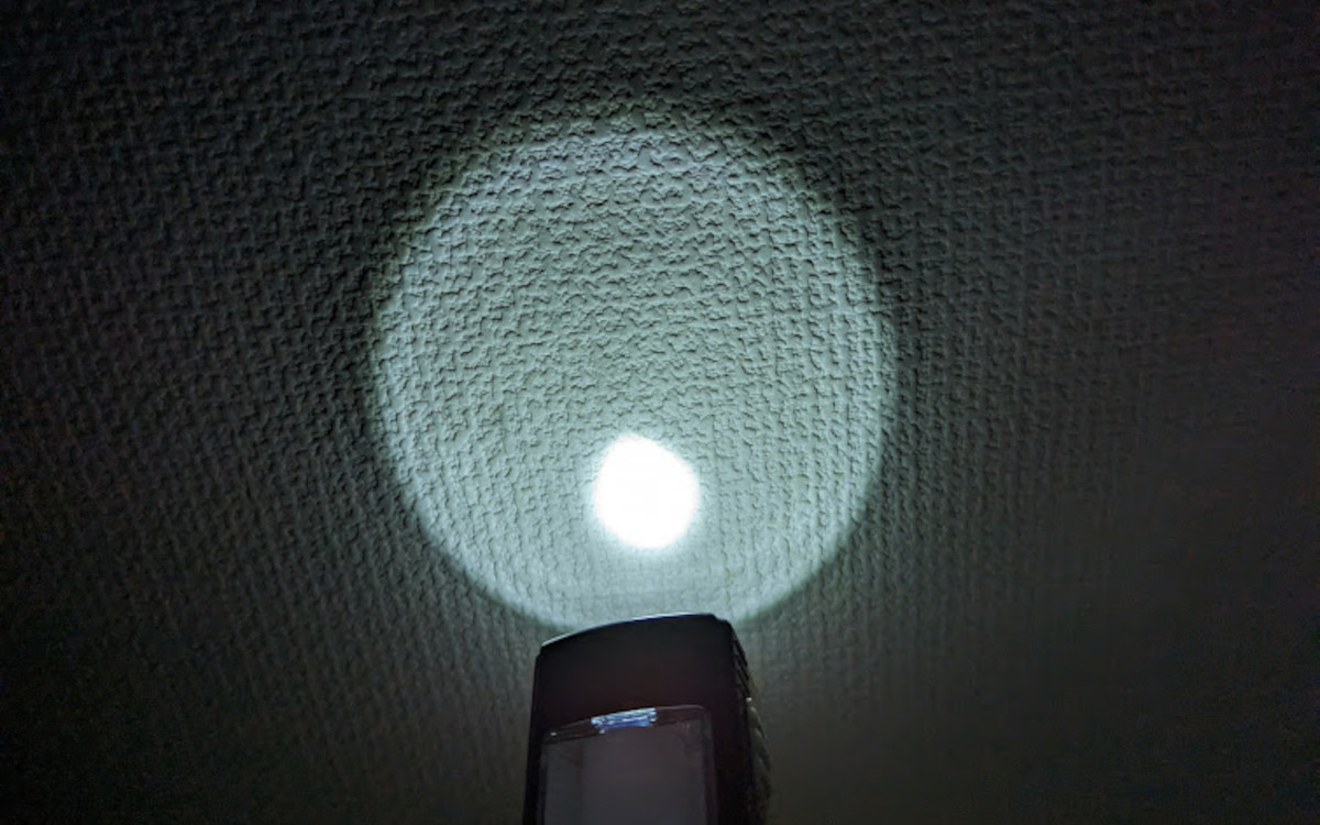 上部のライトはLEDで、横面のランプはSMD。LEDは寿命が長い特徴がありますが、SMDはLEDを小さいチップにしたものなのでLEDより多くつけられ光量がアップします。同商品はSMDにした場合の連続点灯時間が約5時間、LEDにした場合が約12時間と記載されていました。点灯してみると、LEDライトは狭い範囲を集中して照らすことができます。