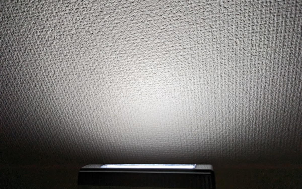 SMDランプの部分は広く作られていて、周りをふわーっと明るくする感じ。真っ暗な部屋の真ん中に置いてみると、さすがに蛍光灯のような明るさにはなりませんが、一点を集中するわけではなく薄明かりが部屋全体に広がるような印象です。