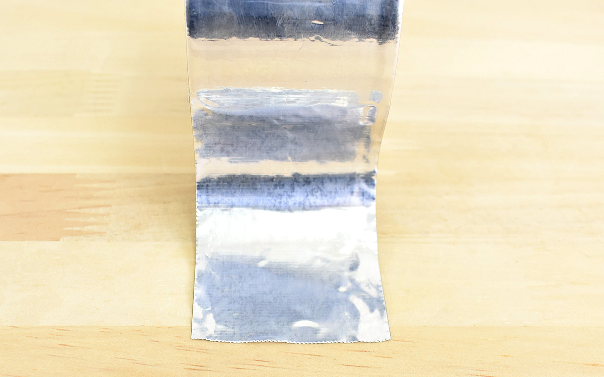 手で触れてみたところ、ガムテープのような凹凸感はなく表面はツルツルとしています。アルミ箔素材のため薄く反射はありますが、使用する上では特に気になりませんでした。