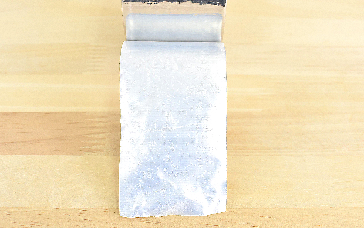 テープの裏面には端までしっかりと接着素材がついていました。触れてみると指がピタッとへばりつくほどの強い粘着性があります。