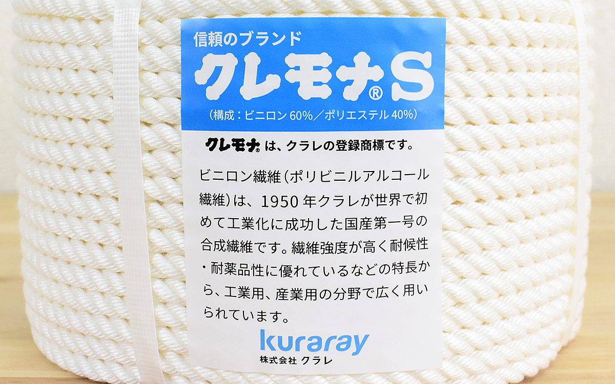 ●ビニロン繊維を使用した国産ロープ「クレモナロープ3打ち」(モノタロウ)