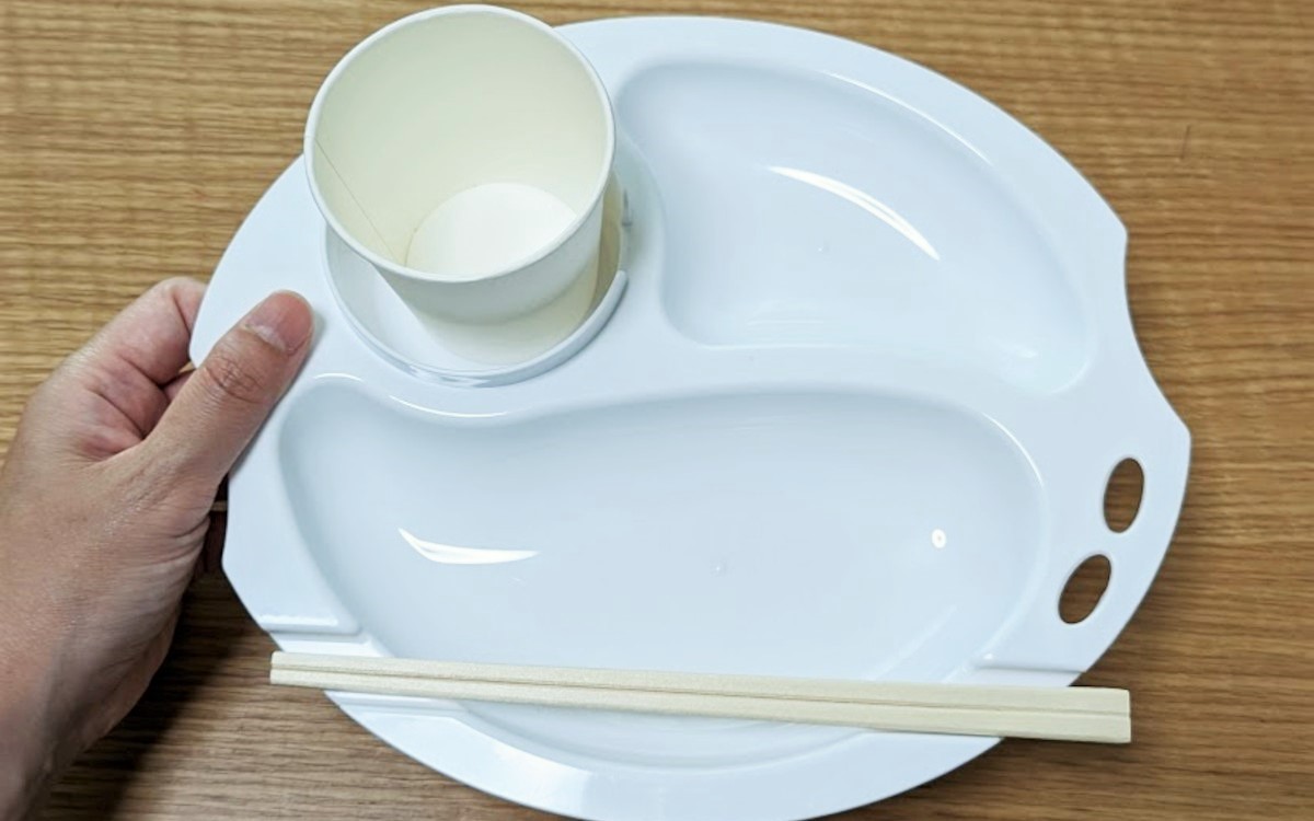 家族や仲間とキャンプへ行ったり、家でバーベキューをしたりするのが楽しい季節になってきました。人数が多いと会話も弾みますが、自分の皿やコップがどれか分からなくなってしまうこともしばしば…。今回紹介する「片手で使えるトレー(JOYTHM)」(110円/税込)は、そんな時に便利な機能性抜群の商品です。