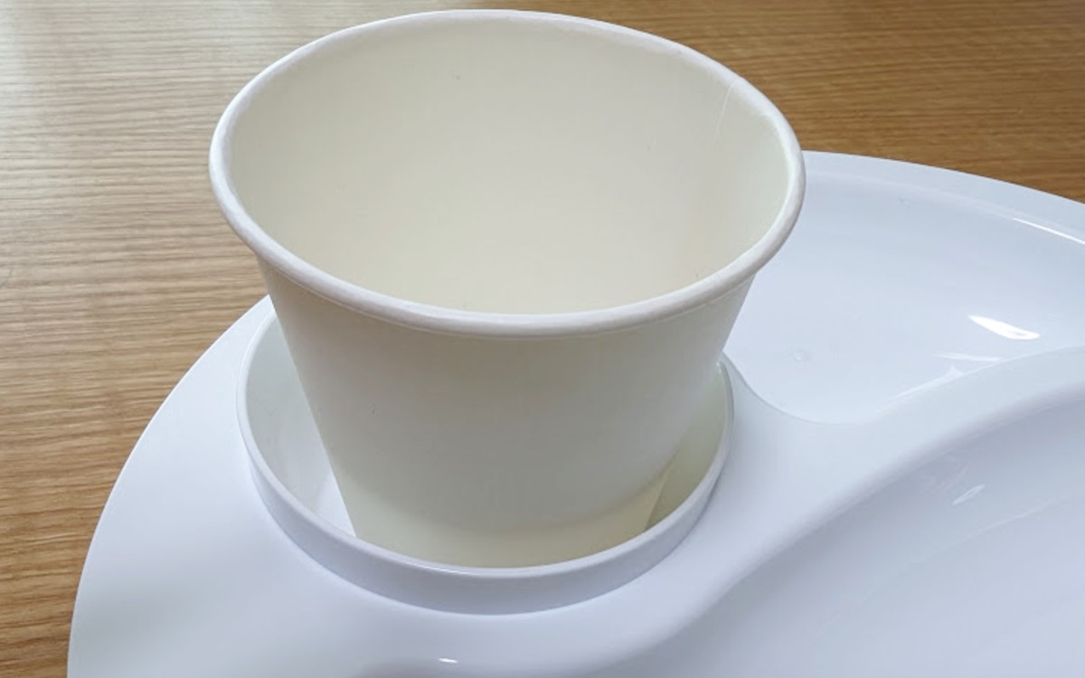コップを置くところは、縁が少し高い作りに。おかげでコップが倒れにくくなるのがありがたいですね。