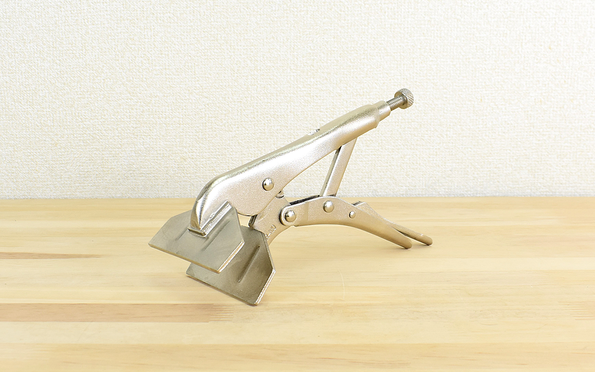金属板の加工や板同士の接着時に使用するバイス(万力)。作業台に固定するタイプから手軽に扱えるサイズ感のものまで幅広い種類がありますよね。対象物があまり大きくないのであれば、サっと使ってサっと片づけられるアイテムを準備しておきたいところ。そこで今回は、モノタロウで販売されている「バイスプライヤー フラット式」(1969円/税込)という工具を購入してみました。