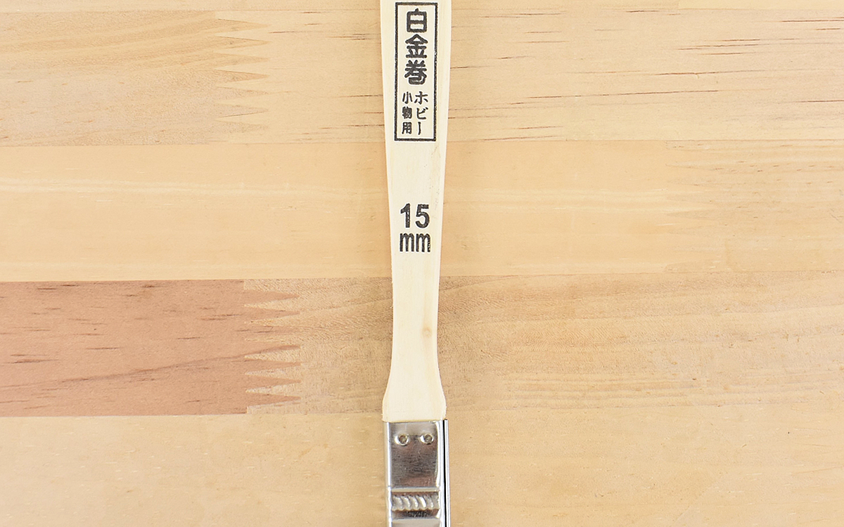 今回は1番小さな5号サイズを購入。15mmの刷毛幅なので、幅が狭い部分やコーナー部分の細かい場所の塗装にぴったりでした。他にも同シリーズでは8・10・15・20号サイズが販売されています。