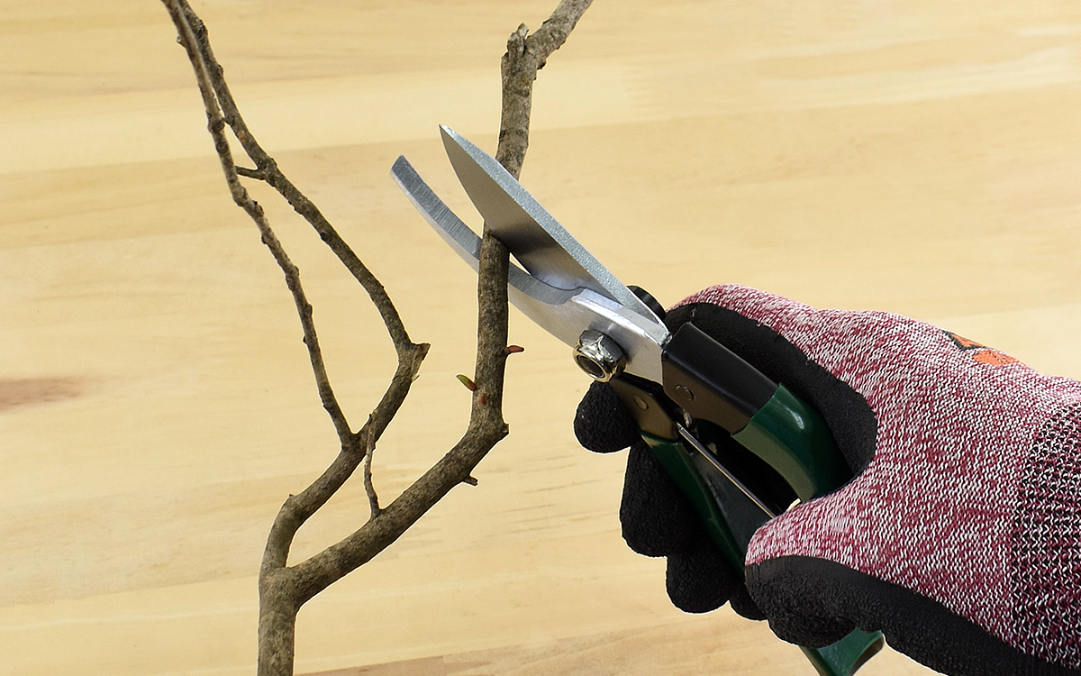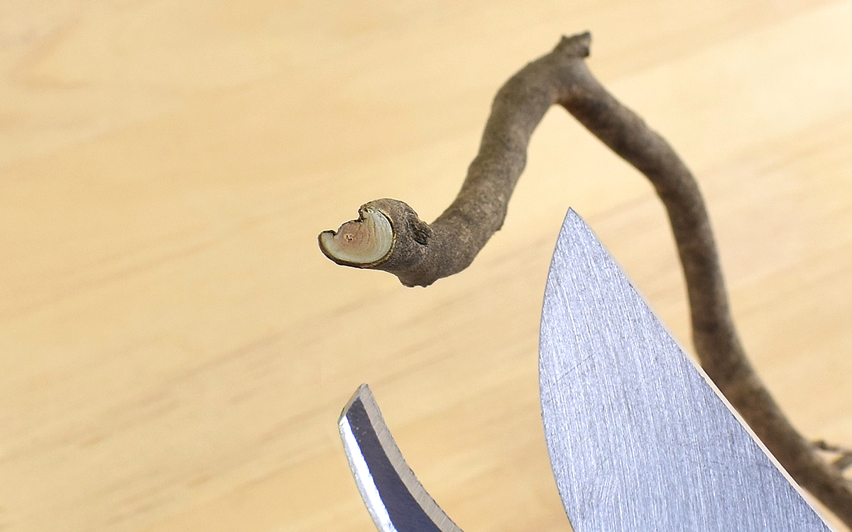 実際に枝を切ってみました。カットしたときはジョキンっと小気味良い感触があり、スパっと気持ちよく剪定できました。断面もきれいに切断できて切れ味も抜群です。