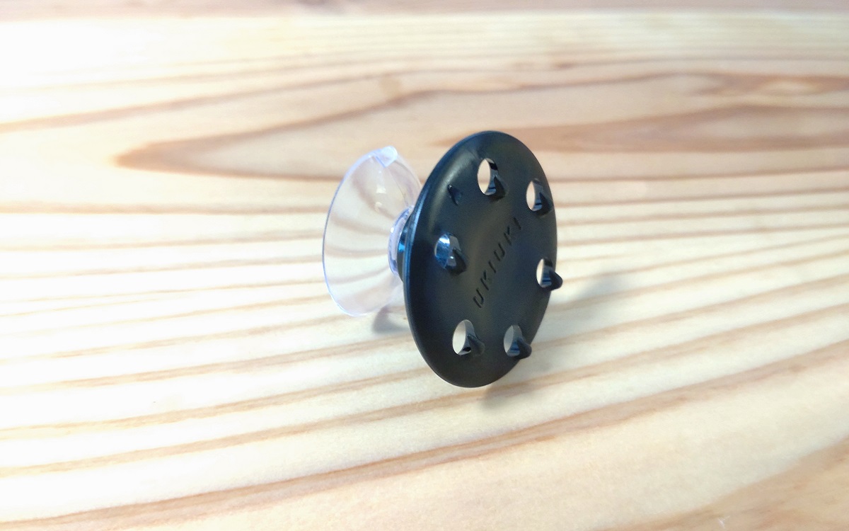 これだけで準備は完成ですが、その前に注意しておいて欲しいことが2つ。まずは吸盤をくっつける面をキレイに掃除して、水気を拭き取っておきましょう。そしてくっつける際には“トゲ”が上を向くように注意する必要があります。よく見ると“涙型”の目印がついているので、目印が上に来るようにするとわかりやすいですよ。