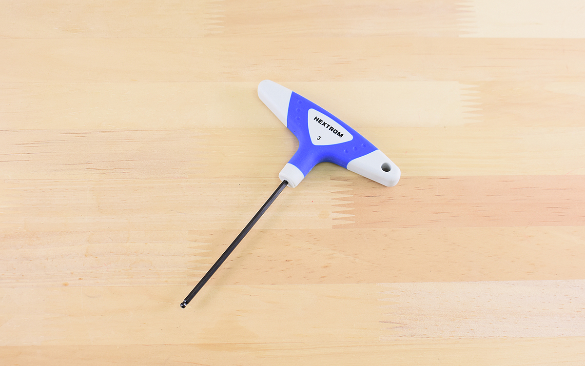通常の六角レンチが届きづらい場所にも有効なボールポイント型の六角棒レンチ。さらにT形ハンドルがあることで機能性も格段にアップしています。