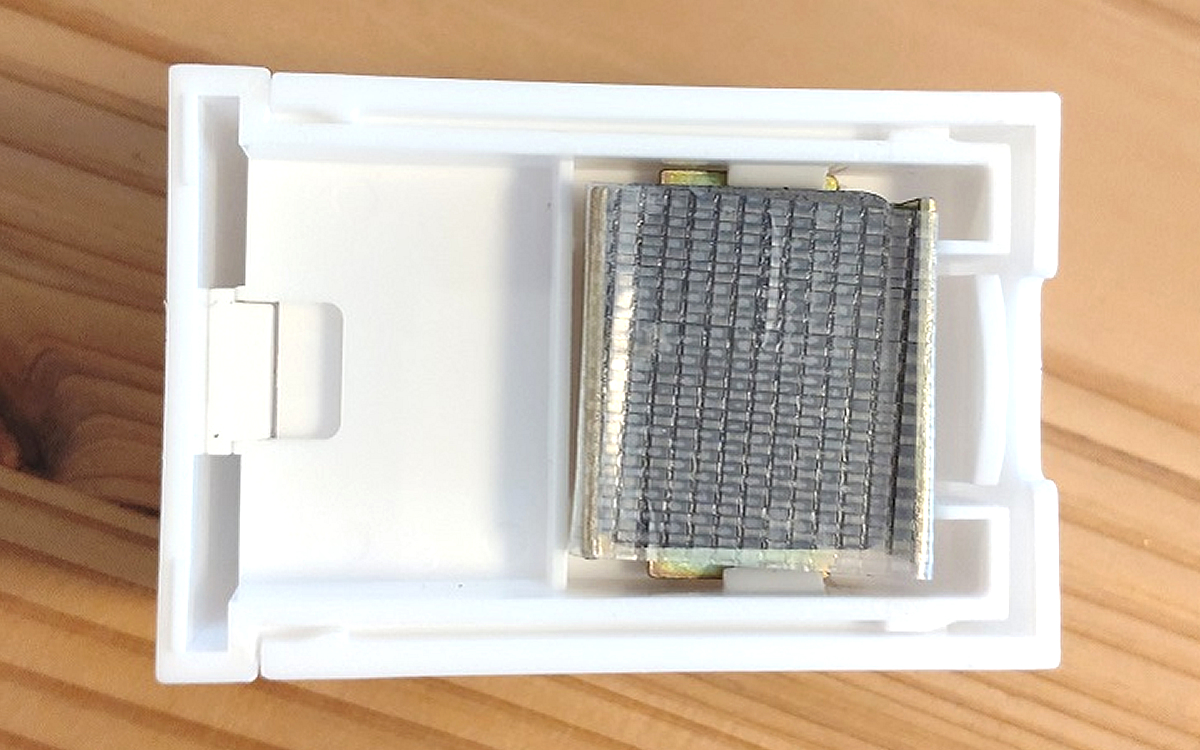 本体はプラスチック製ですが、ティッシュを固定する内側の面には弾力性のある滑り止めが。この滑り止めがあるおかげで、ボックスが滑ることなくしっかりとホールドされています。ホルダーは2つあるので、もう1つも同様に取り付ければ準備は完了。