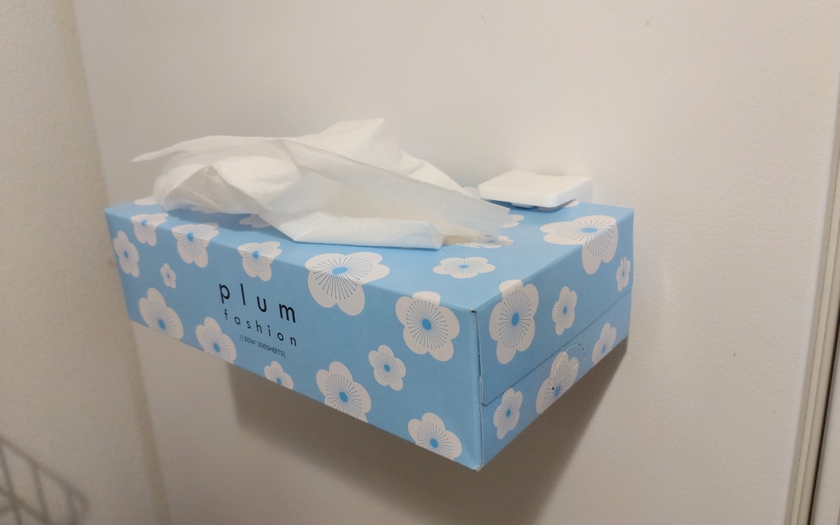 キッチンで調理中、ちょっとこぼしたソースを拭きたいシーンってありますよね。大抵はキッチンペーパーを使いますが、少量を拭くのにはティッシュペーパーで十分なことも。ほかにもキッチンでティッシュを使いたい場面は多々あるものの、かさばるボックスティッシュの置き場所に困っていました。