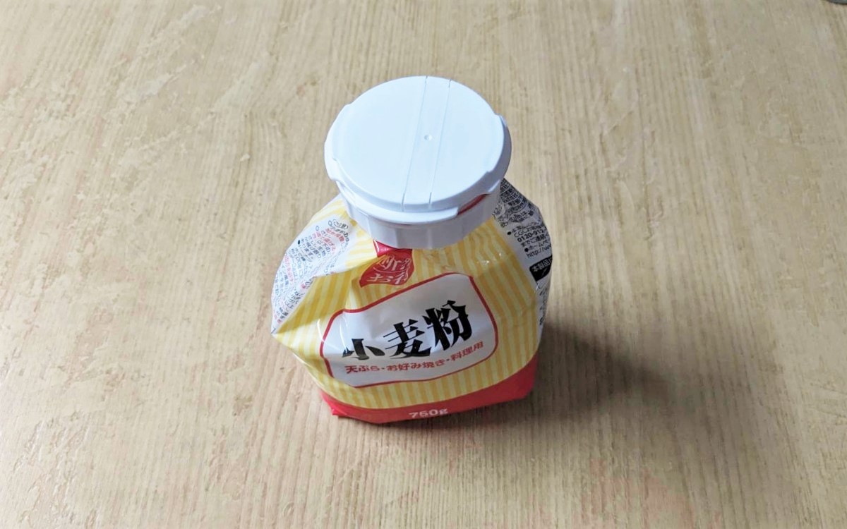 ●小麦粉やパン粉を使う分だけ出せる「粉もの袋キャップ」(ダイソー)