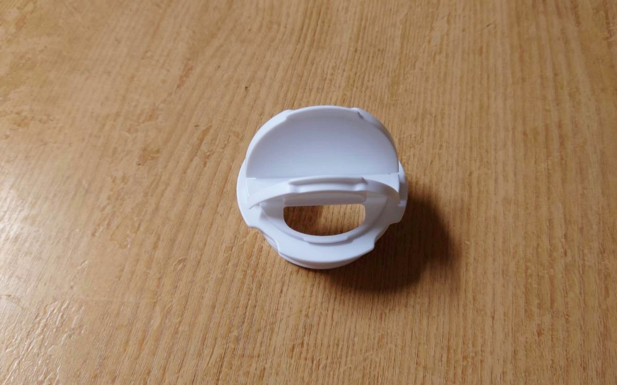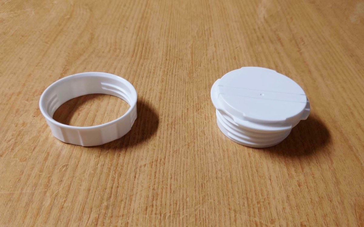 キャップのはめ方はパッケージ裏に手順が記載してあります。まず袋の切り口上部からリングパーツを通しましょう。次に袋の中側にフタのパーツを入れて、リング部分を上に少し上げながら袋を挟み込むように反時計回りに閉めてください。