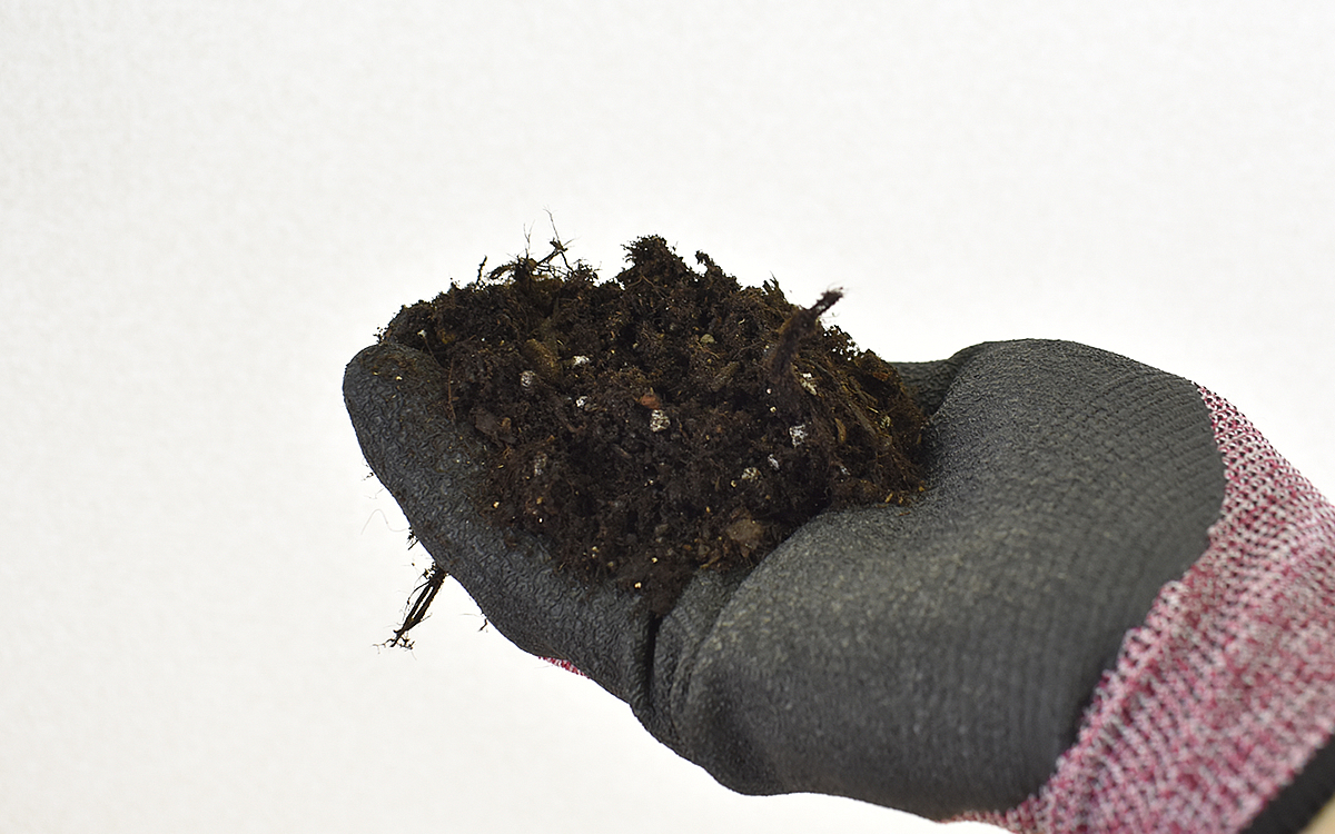 質量は約7kgあり、袋を開封すると上部までたっぷり培養土が詰まっていました。堆肥ベースということもあり少し匂いがしますが、イヤな匂いではなく従来の培養土とあまり変わらない印象です。
