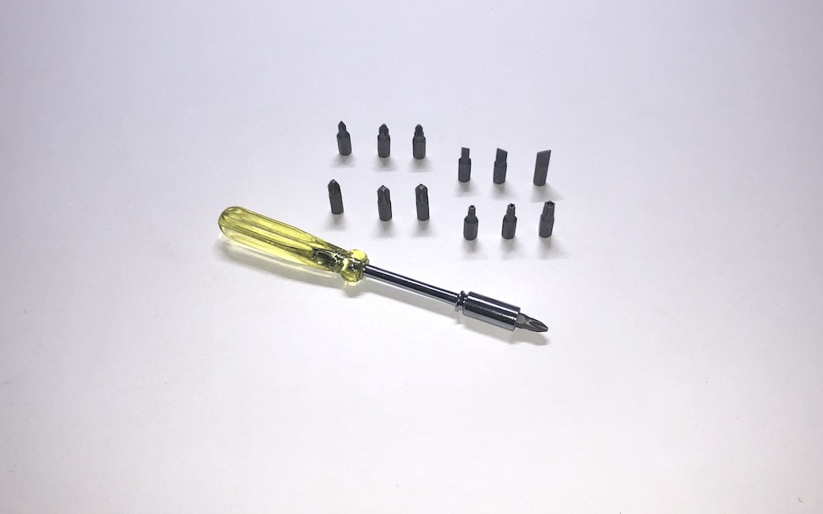 ドライバーの種類は一般的なプラス、マイナスのビットに加え、ポジドライブビットとヘックスローブビットの4種類が入っています。プラスのビットには4通りの大きさが揃っており、プラス以外のビットはそれぞれ3通りの大きさが入っていました。これだけの種類があれば、日常でドライバーが必要になったときもほぼ対応できるのではないでしょうか。