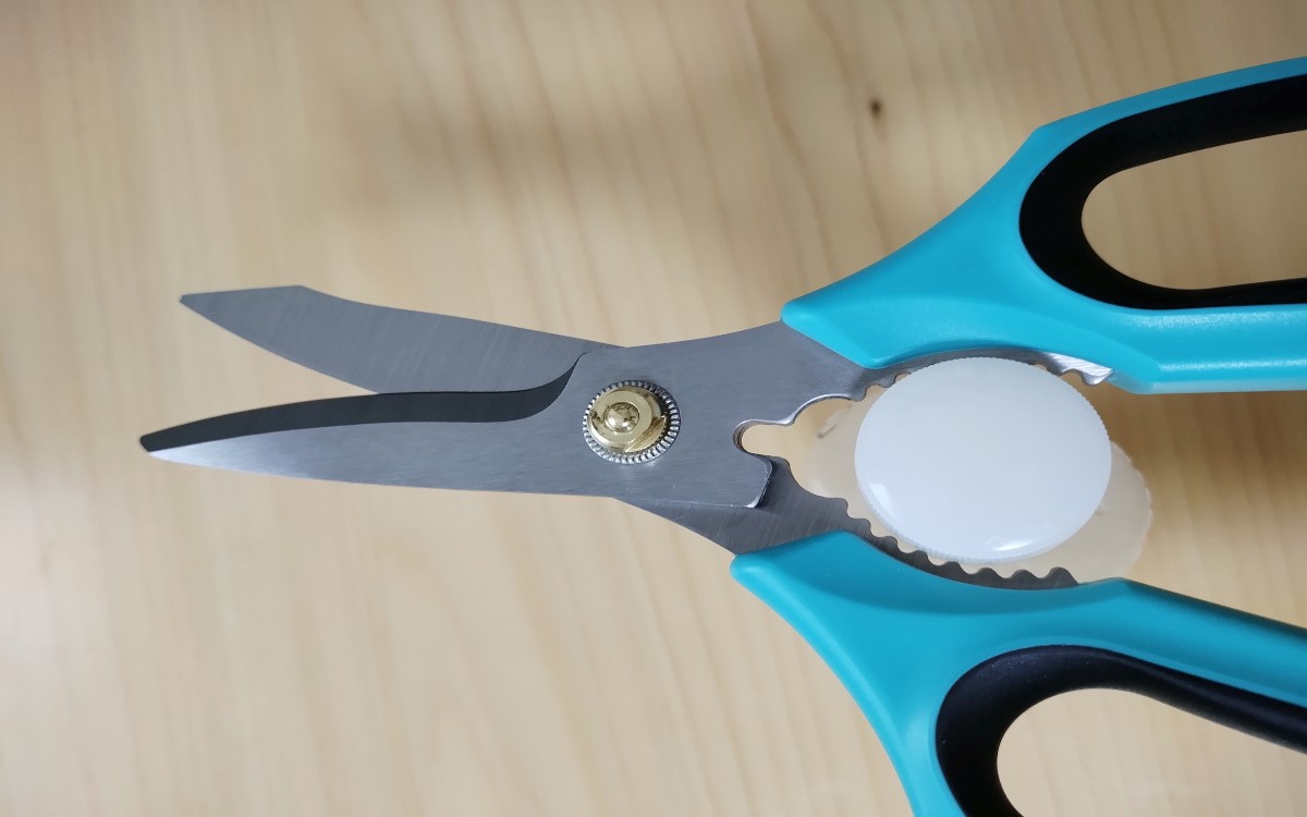 またハサミのハンドルの内側がでこぼこになっており、固い蓋なども挟んでくるっと回せば簡単に開けることができます。