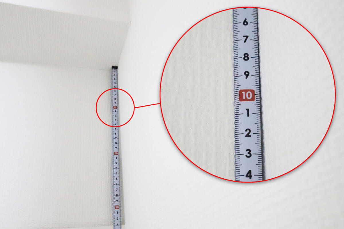 また、テープ裏面は数字表記がタテになっているのもポイント。これは先端のツメを床や天井に押し当てて高さを測るときに、読み取りやすくてありがたい。コンベックス自体も軽いので、持ち上げて天井からの高さを測るのもラクだ。