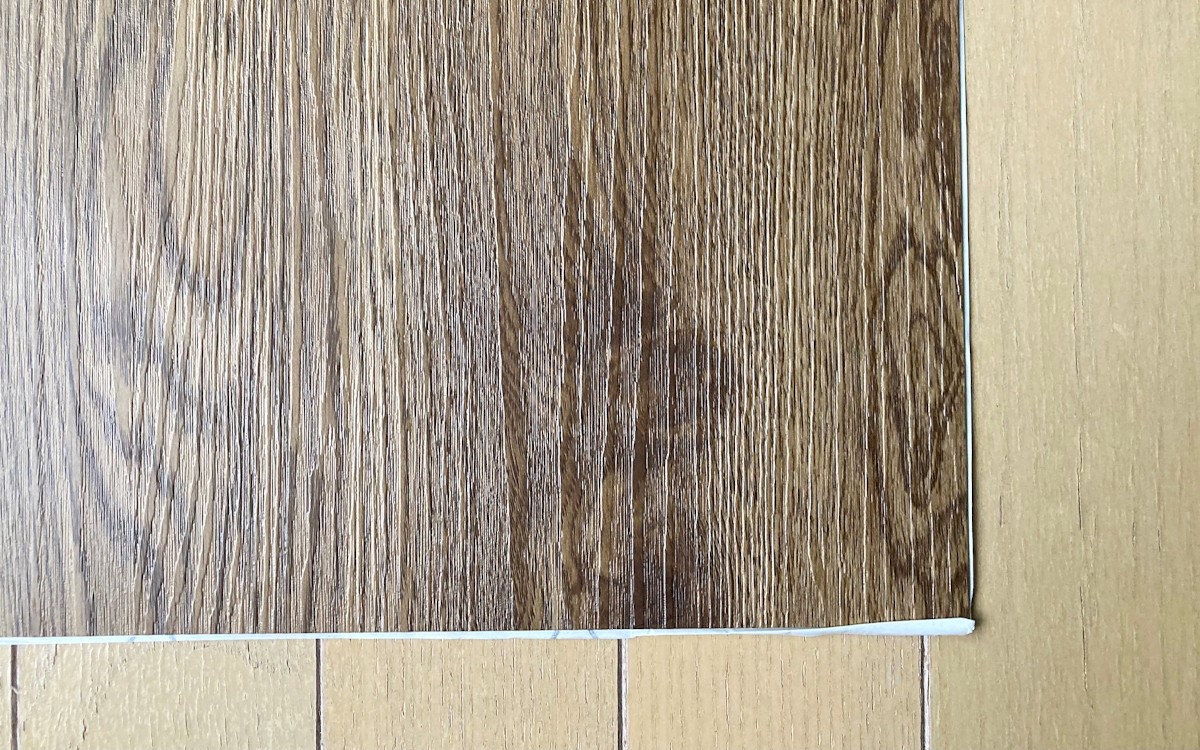 実際に貼ってみると、本当のフローリングのような素材感と触り心地でした。見た目も安っぽくならなかったので大満足です! 厚さは0.16cmと薄いのでサイズ調整でカットも可能。