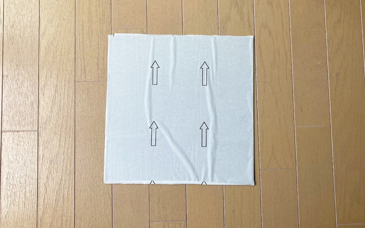 接着面のベタベタ感は必要最小限といった感じ。ノリが多すぎるとフローリング材が傷まないか心配になりますが、そこまでノリたっぷりではないので安心しました。マットを貼るフローリング部分は事前に汚れを取り除いておいてくださいね。