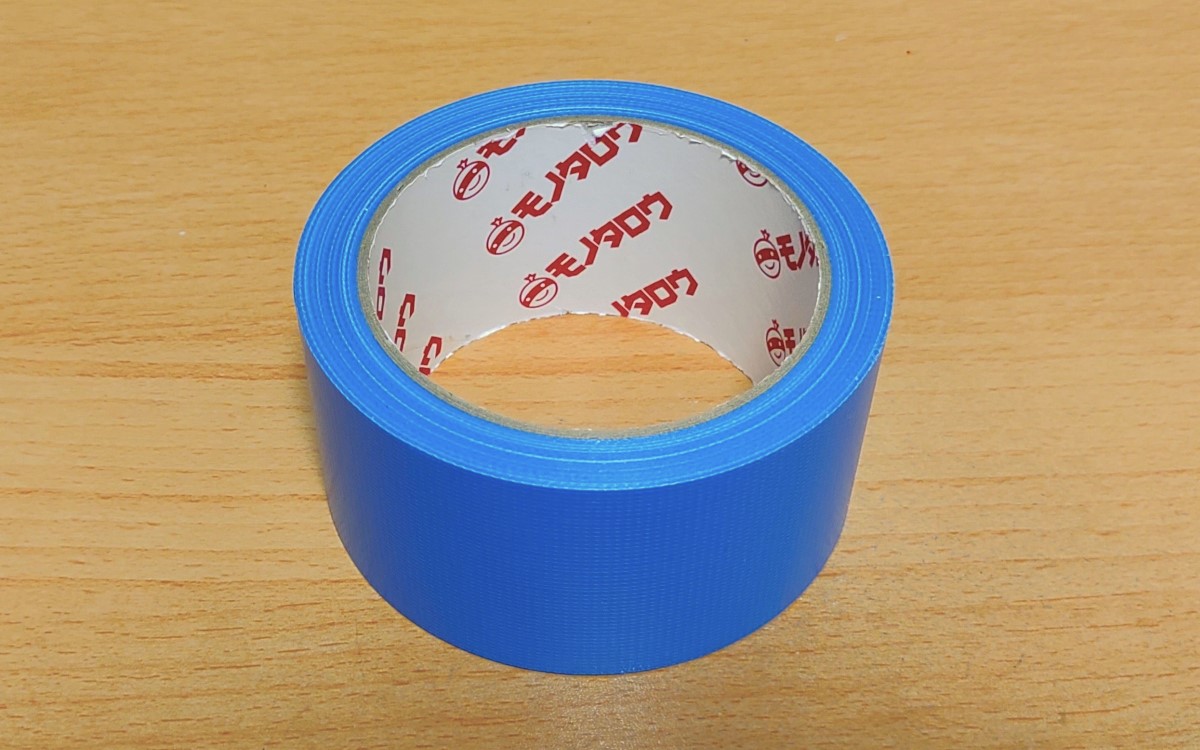 商品のサイズはテープ幅50mm、テープの長さが25m、テープの厚さは約0.13mm。今回購入したのは青ですが、ほかにも緑・白・ピンク・黒・黄色から選べます。