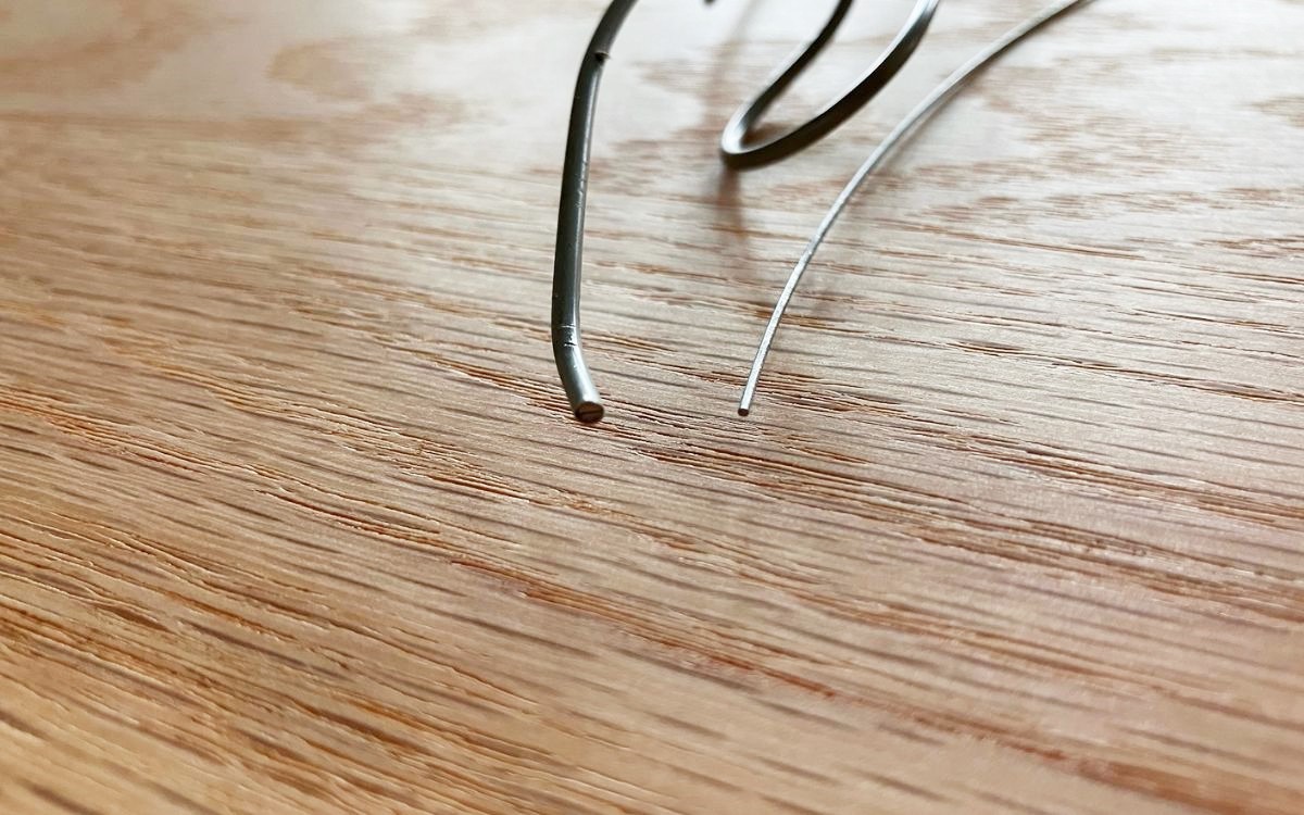 ニッパーの先端は細くコンパクトで、細かい切断作業に向いています。試しに太さの違う針金2種類とインシュロックを切断してみました。本体にバネがついているので、開閉作業が楽におこなえるがGOOD。もちろん切れ味も問題なく、軽い力を加えるだけでサクッと切断することができました。