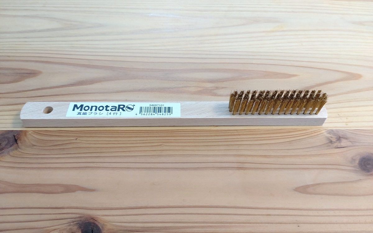 魅力はなんといってもこの安さ。真鍮ブラシで4行タイプだと300円台やそれ以上するものも多い中、モノタロウの真鍮ブラシは税込153円です。メンテナンスに使うブラシ類は消耗品なので、安くて品質の良いものが手に入るのは嬉しいですね。