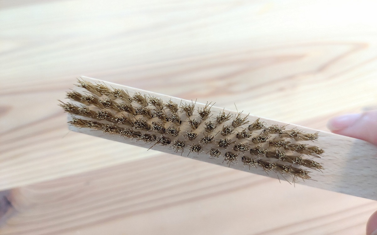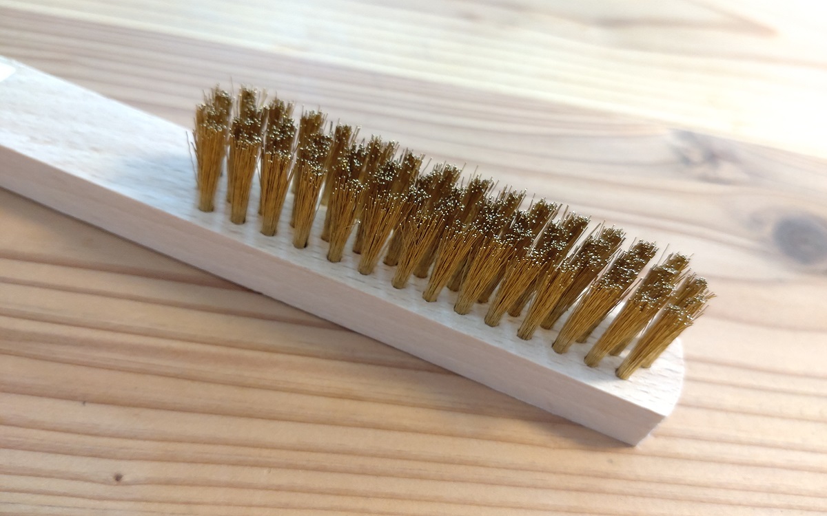 研磨などに使うこういったブラシにはステンレス製やナイロン製などがありますが、当商品は柔らかな真鍮製。傷をつけたくない部分の研磨や磨きに最適です。試しにバイクのパーツの錆を落としてみましたが、表面に傷をつけることなくキレイに錆が取れました。