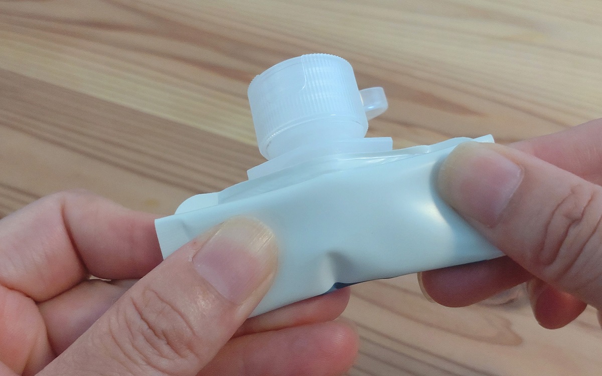 また、本体にマチがなく柔らかい素材なので残り少なくなっても畳んで絞れるのがポイント。せっかく詰め替えたものを、最後まで無駄なく使用できますよ。