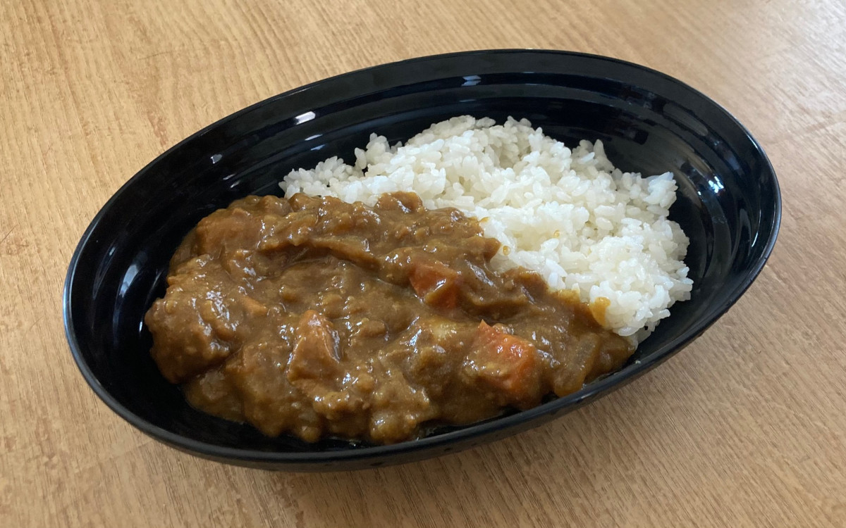 今回はカレーを盛りつけてみました。お茶碗1杯分のご飯をよそうと写真のような感じになります。こちらのお皿、耐熱温度は140度なのですが「カレーやミートソースなどの加熱は耐熱温度を越えることがある」ということなので、温め過ぎないよう気をつけてくださいね。