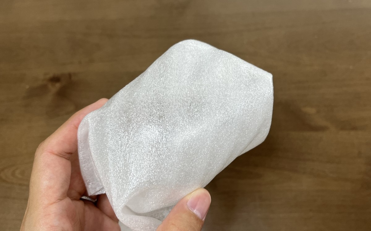 実際にコップを梱包してみたところ、厚さが1mmで巻きやすく全面をしっかりと包めました。他にも小さい瓶やカトラリーなども包めますので、小物の配送にはピッタリの商品です。