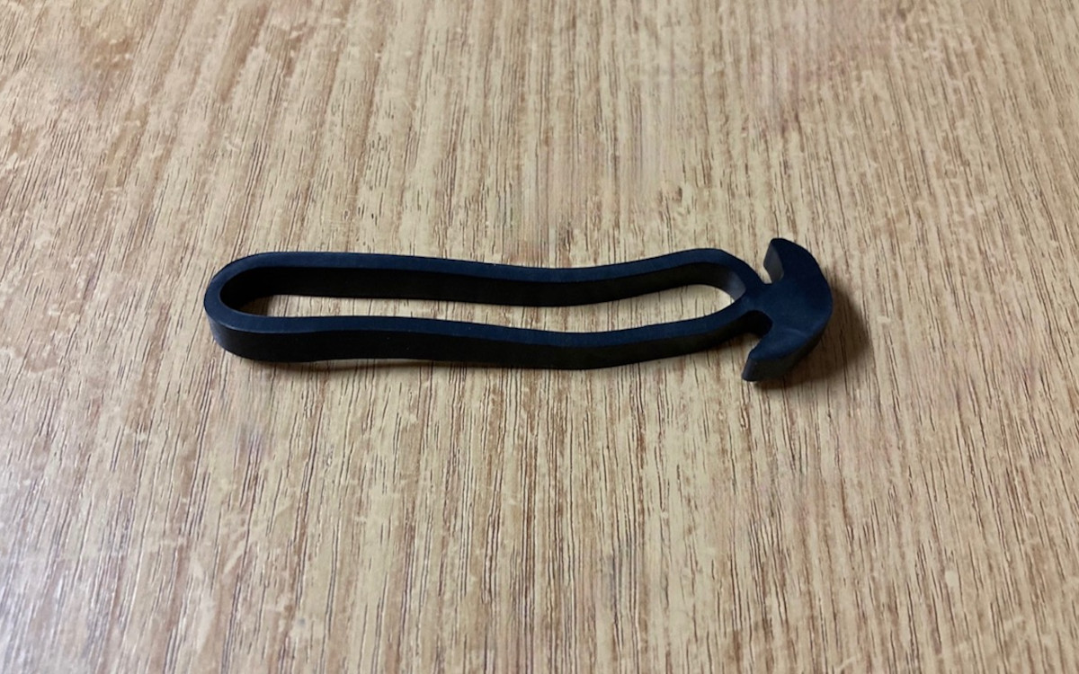 心配だったのは突起部分と輪っか部分のつなぎ目。ここがしっかりしていないと伸ばしたときにすぐ切れるんじゃないかな? と思っていたのですが、突起部分をつまんで思いきり引っ張ってもちぎれそうな感じはありません。