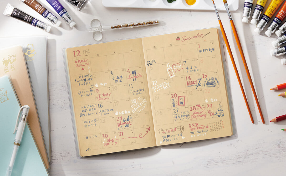 そのほか、スケジュールとノートが1冊で管理できる「フォルダイアリー」、ウィークリーと2ウィークスの予定が一覧できて、表紙とカラフルなエッジのコントラストも鮮やかな「カラーエッジダイアリー」、名刺ケースやカードホルダーに入れて持ち運び可能で商談時などにサッと取り出せると人気の「ネームカードダイアリー」など、数々の2024年版手帳がラインナップされる。