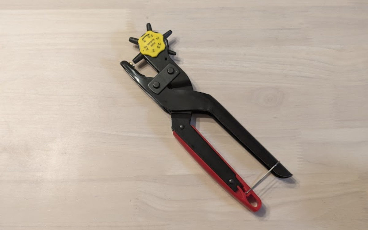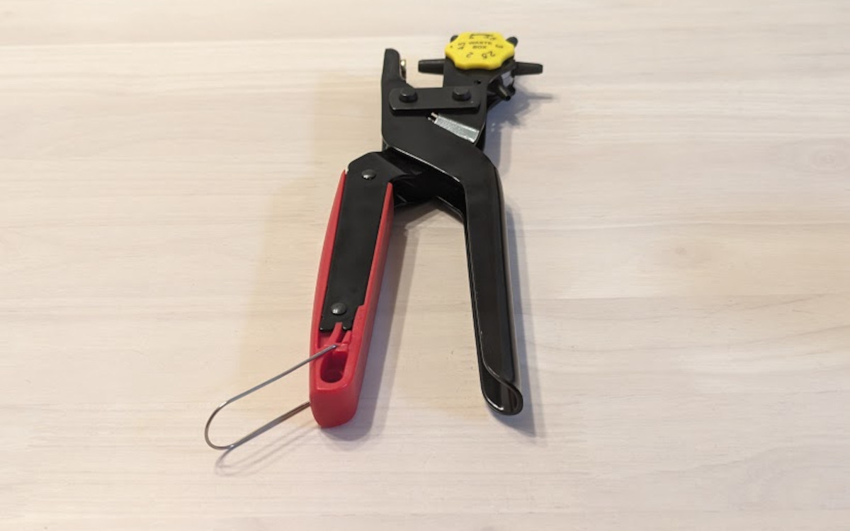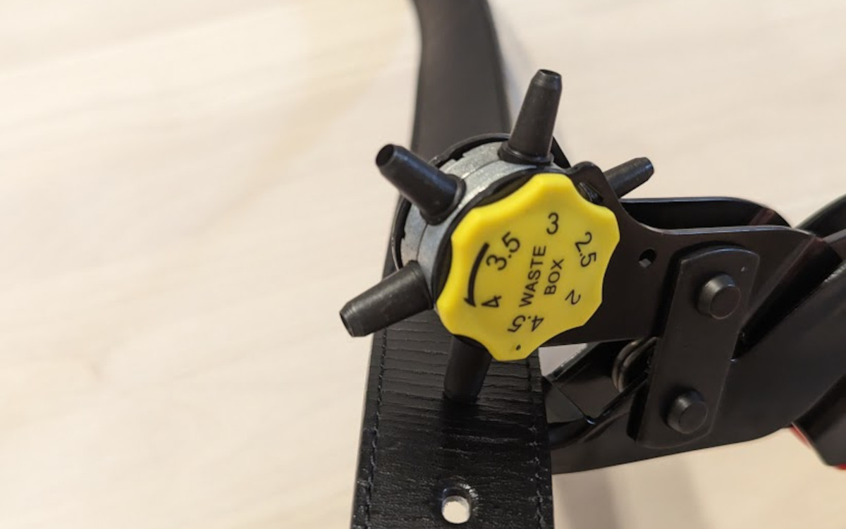 買ってきたベルトの穴の位置が合わなかったり、体形が変わって少し穴の位置をずらしたくなったりすることってありませんか? キリを使ってグリグリやってみようと思っても、上手に穴が開けられるわけもなく…。そんな時にあると便利なのが、今回購入した「パンチプライヤー 回転式穴あけ」(1309円/税込)です。