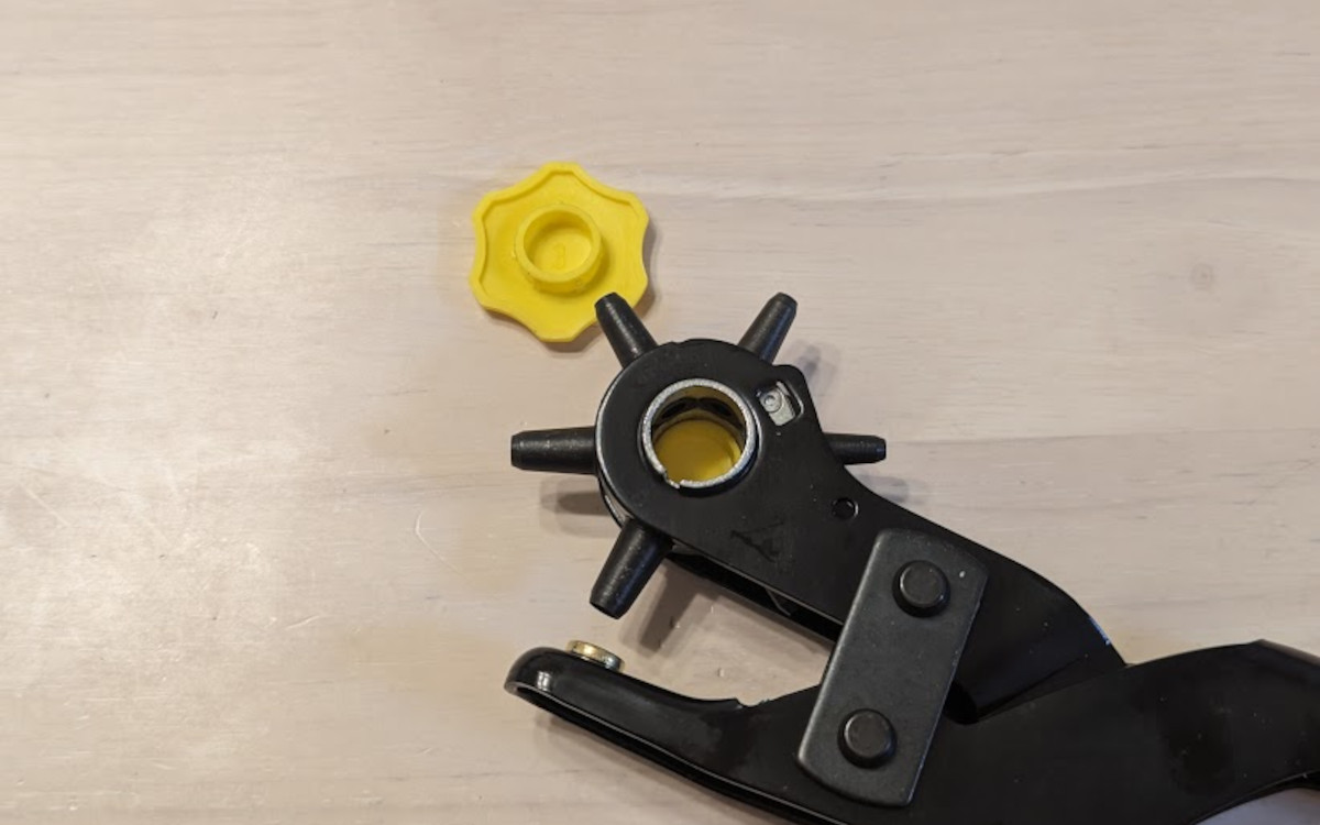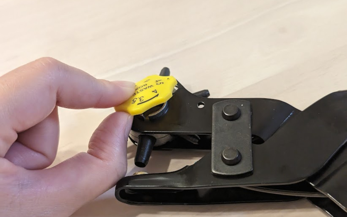 使い方は、穴を開けたい部分を挟んでギュッと握るだけ。女性でも簡単にパンチングできました。