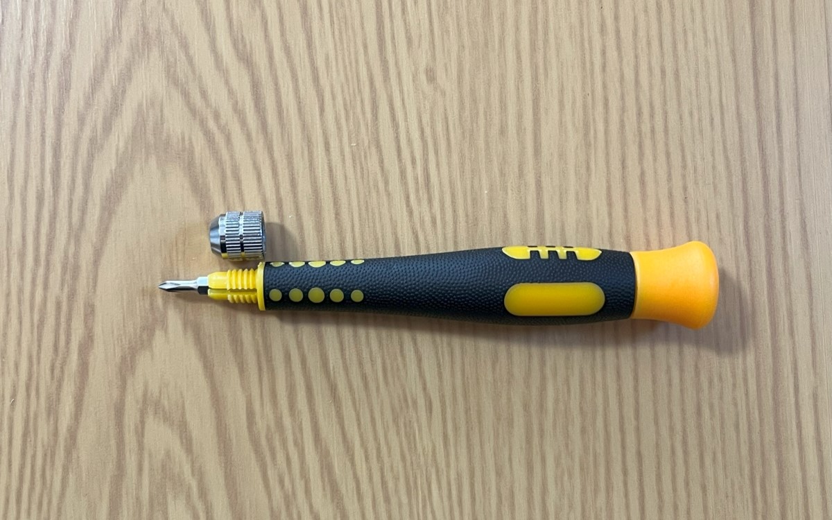 ドライバーハンドルには簡単にドライバービットを取り付けることができました。サイズを測ってみると、ドライバーハンドルの全長は11.3cm。滑り止めも付いており、重さも23gと超軽量なので扱いやすい仕上がりになっています。
