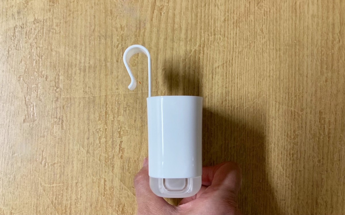 サイズは約9.3(幅)×11.7(高さ)×6cm(奥行)。少し小ぶりですが、タオルバーの端っこにかけるにはちょうどいいサイズ感ではないでしょうか? 小物は300gまで入れられます。