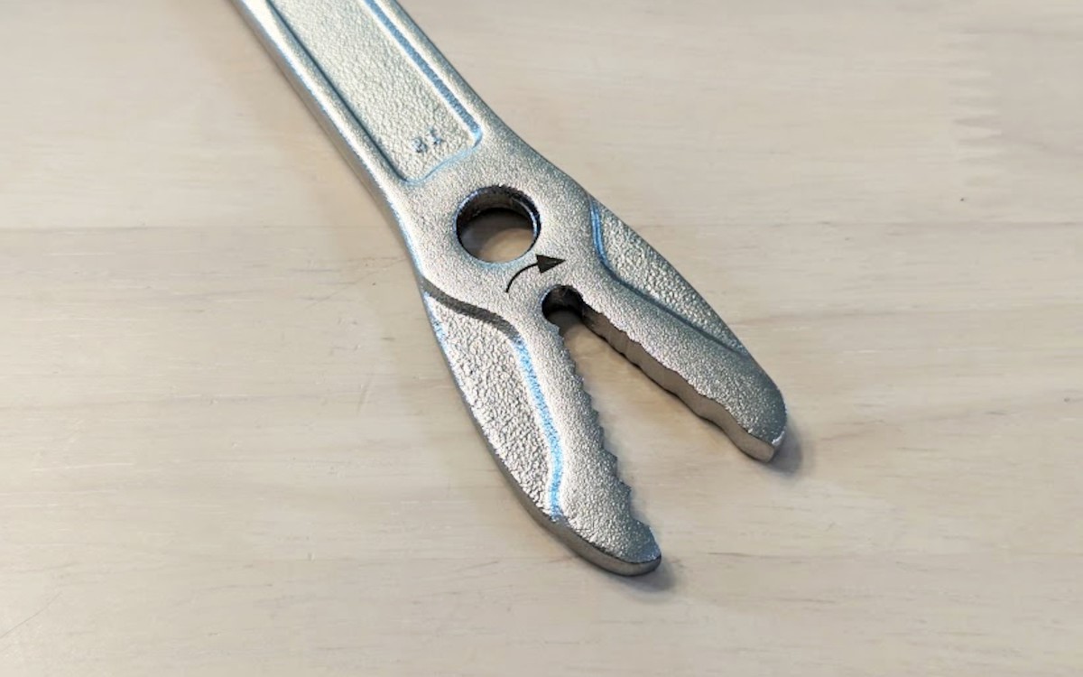 さらに便利なのが、モンキースパナの反対側にあるクイック式のレンチ。ギザギザとしているので、グッと押し込むだけで回すことができます。開口サイズを変更する手間さえかけたくない時に、サッと取り出してすぐに使えるのはありがたいですね。
