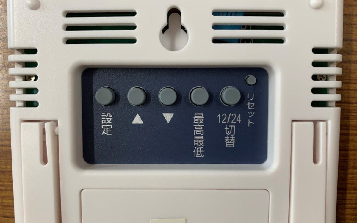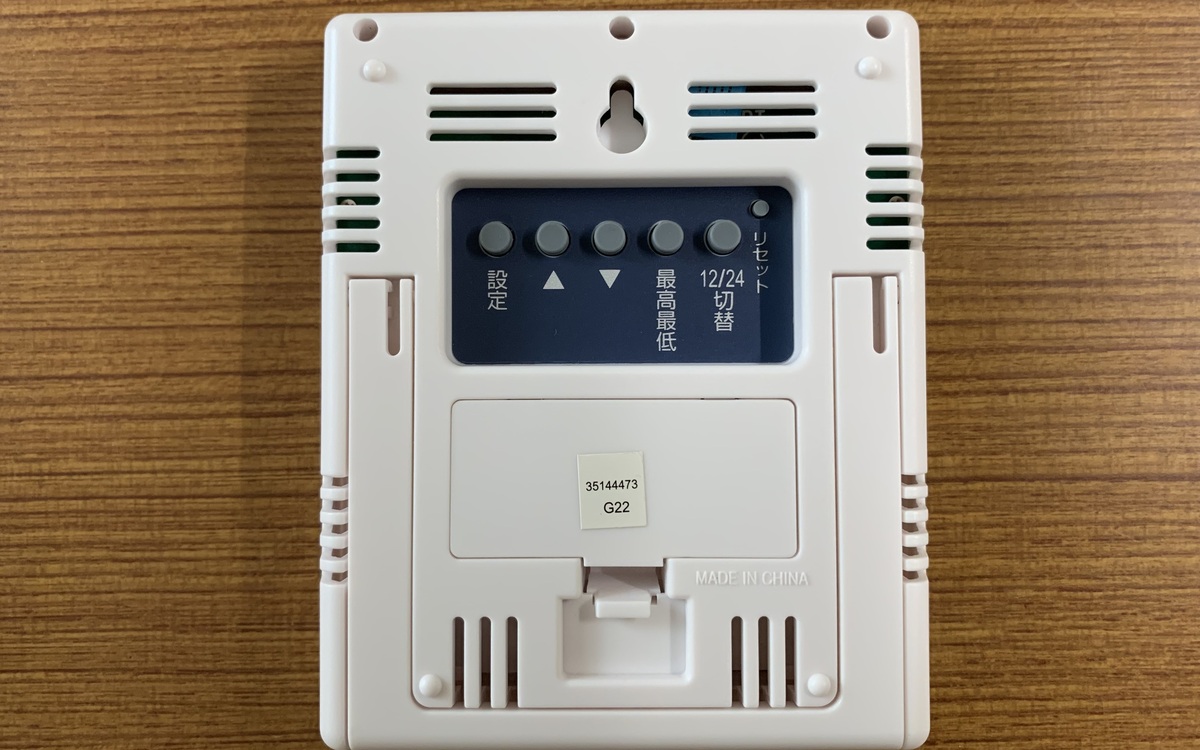 また温湿度計の裏面にある最高最低ボタンを押すことで、計測を開始してからの温度と湿度の最高最低数値の計測も可能。最高最低ボタンを2秒以上押すとそれまでの記録がリセットされ、新たな記録を開始する仕組みです。この機能があれば不在時や就寝時の室温確認にも便利ですね。