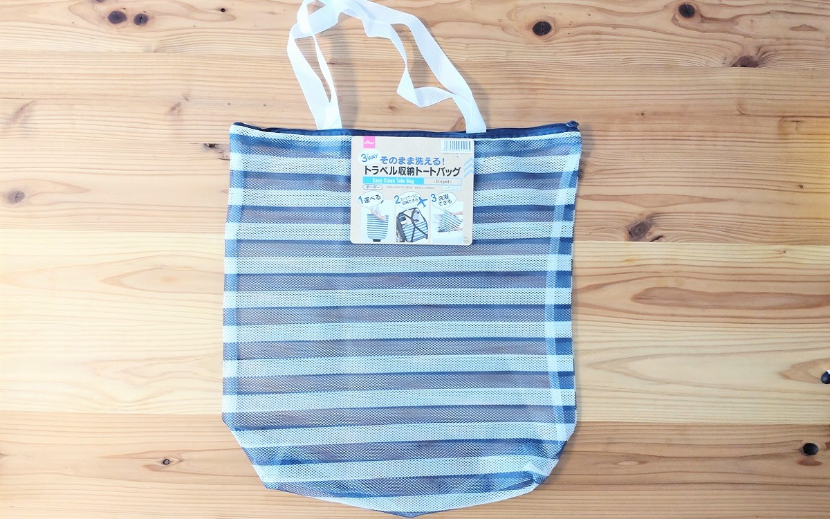 旅行の準備をする際は、衣類などをわけてパッキングできるちょっとした“袋”が重宝しますよね。用途や日程別に袋をわけてスーツケースに入れておけば、必要な時にすぐに取り出せてとても便利。しかし、帰ってきた後の片付けが億劫だと感じたことはありませんか? 私は使用済の衣類を分類して、洗濯機に入れるのが毎回面倒…。ところが、ダイソーの「そのまま洗える! トラベル収納トートバッグ(ボーダー)」(110円/税込)がそんな悩みを解決してくれました!
