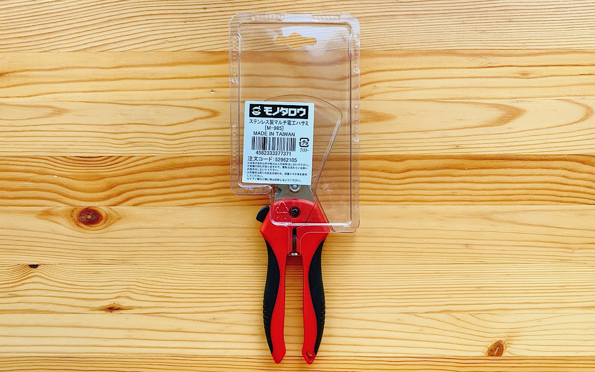 ハサミにも用途があるので、切断する物に合ったハサミを選びたいですよね。不用品の処分でケーブルや段ボールなどを切断したいときに便利なのが電工ハサミ。今回購入した「マルチ電工ハサミ ステンレス製」(1969円/税込)は、ロープ、ケーブル、コード、軟ワイヤー、段ボール、木などの切断に適した万能ハサミです。