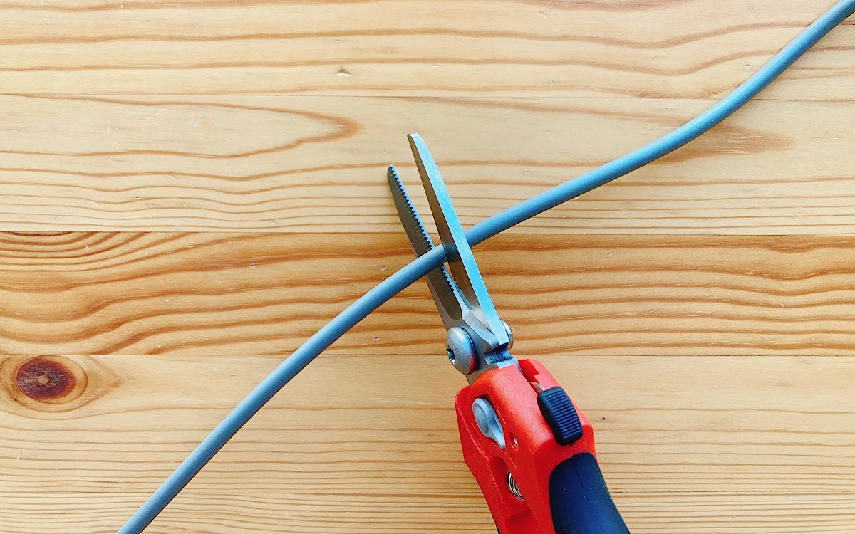 実際にケーブルを切断するのに使用してみたところ、ハサミの刃がギザギザ加工になっているおかげで滑ることなく切断したい部分に刃がくい込んでいくのがわかります。