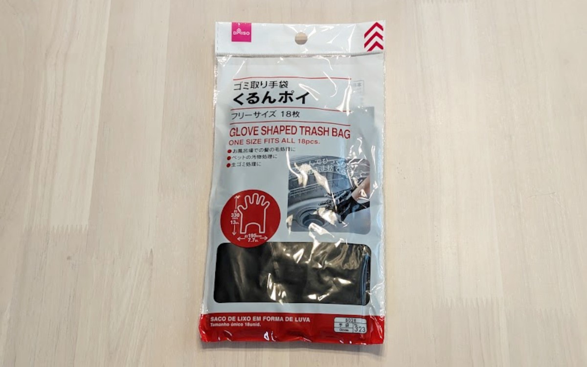 ●手を汚さずに汚物をつかめる「ゴミ取り手袋 くるんポイ 18枚」(ダイソー)