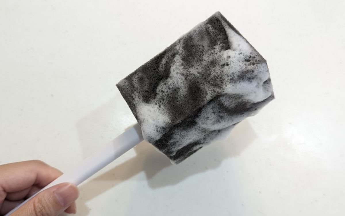 洗剤をつけてみると泡立ちはバツグンでした。少量の洗剤でも泡立つので、エコにつながってGOOD。
