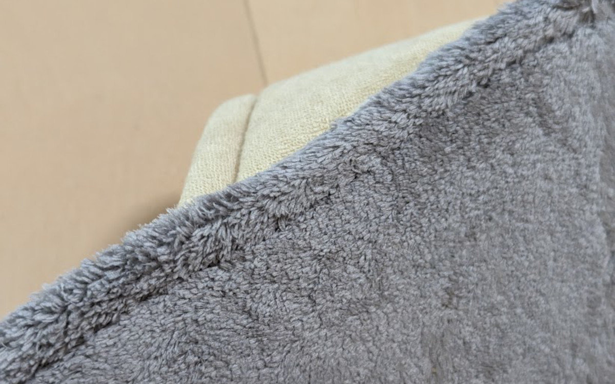 裏側の毛は短めですが、かなりフワフワ。履いて歩くだけでモップのように床をピカピカに掃除できます。汚れたら洗うことも可能。とはいえ、毎日洗うのはさすがに面倒です…。そんな時は掃除機で裏のゴミだけサッと吸い取ることもできました。