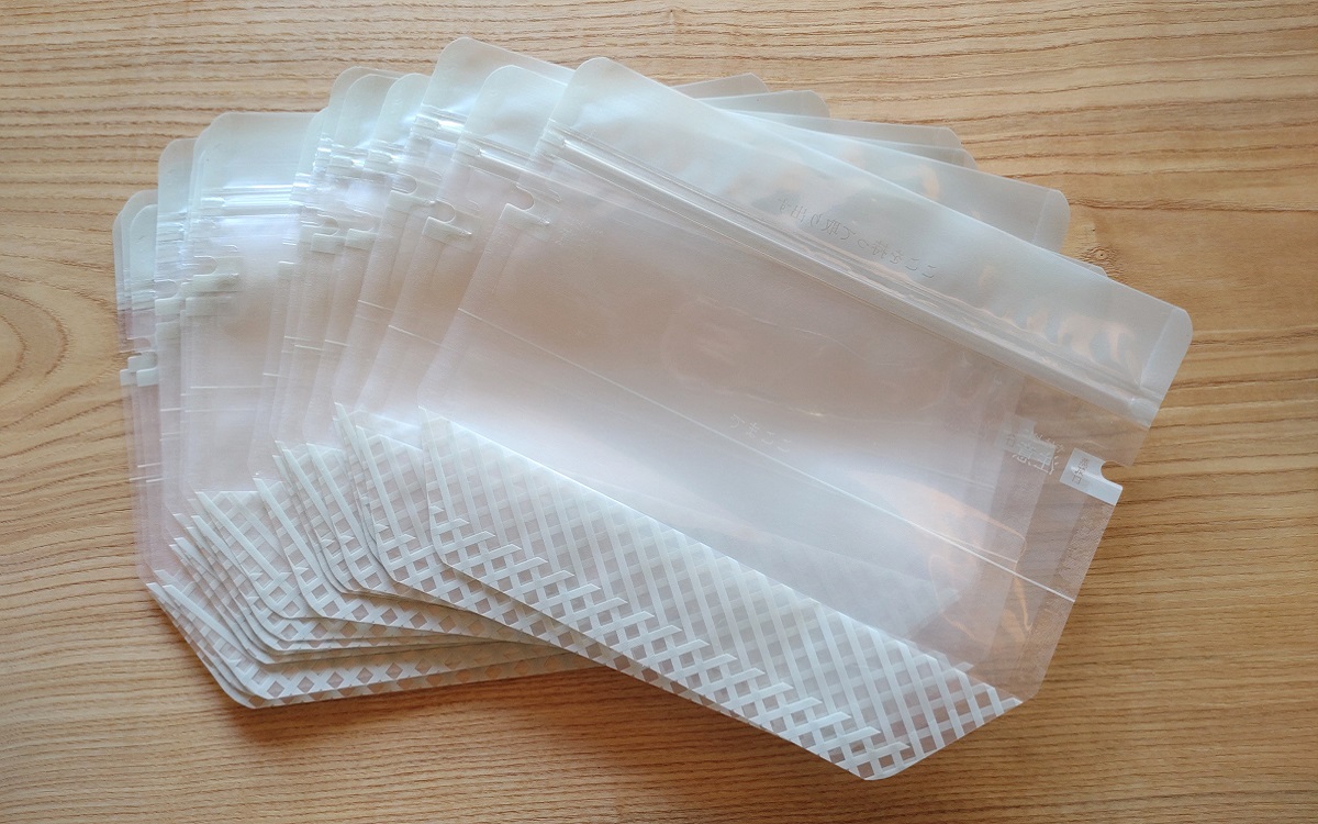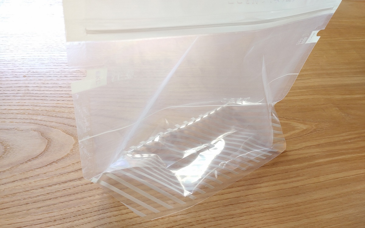 まず驚くのがコスパの良さ。20枚入って330円なので、1枚あたり16.5円です。かなりリーズナブルですが、触った感じはしっかりしていて安っぽさを感じません。大きさも横約23.9×縦19cmと十分なサイズ。底にはマチがあるので、広げるとちゃんと自立します。