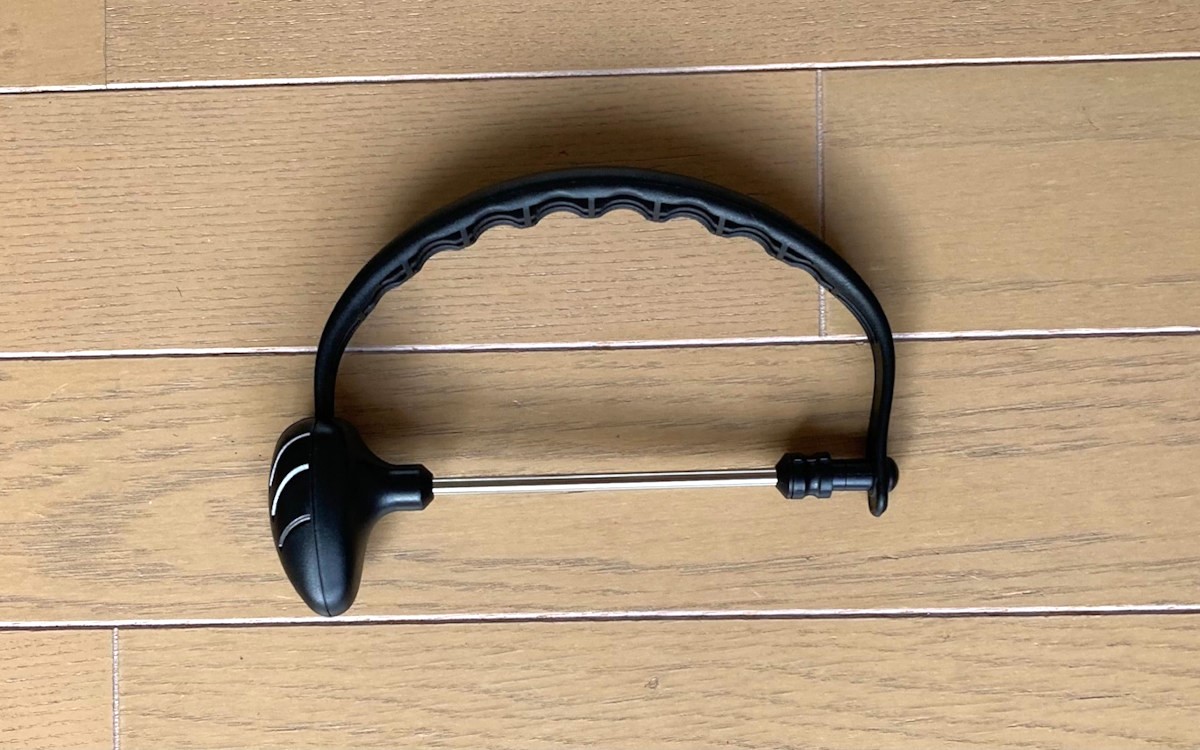 シルバー部分を引き出すには、把手下部の細い方に付属しているロックを指で外側にスライドさせます。すると中からドライバーのような形状の鋭利な部品が出てきました。先端がフックのようになっているのはワケがあるのですが、後ほどお伝えしますね。