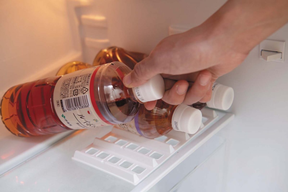 ペットボトルや缶の転がりを防いで冷蔵庫内がスッキリ!
